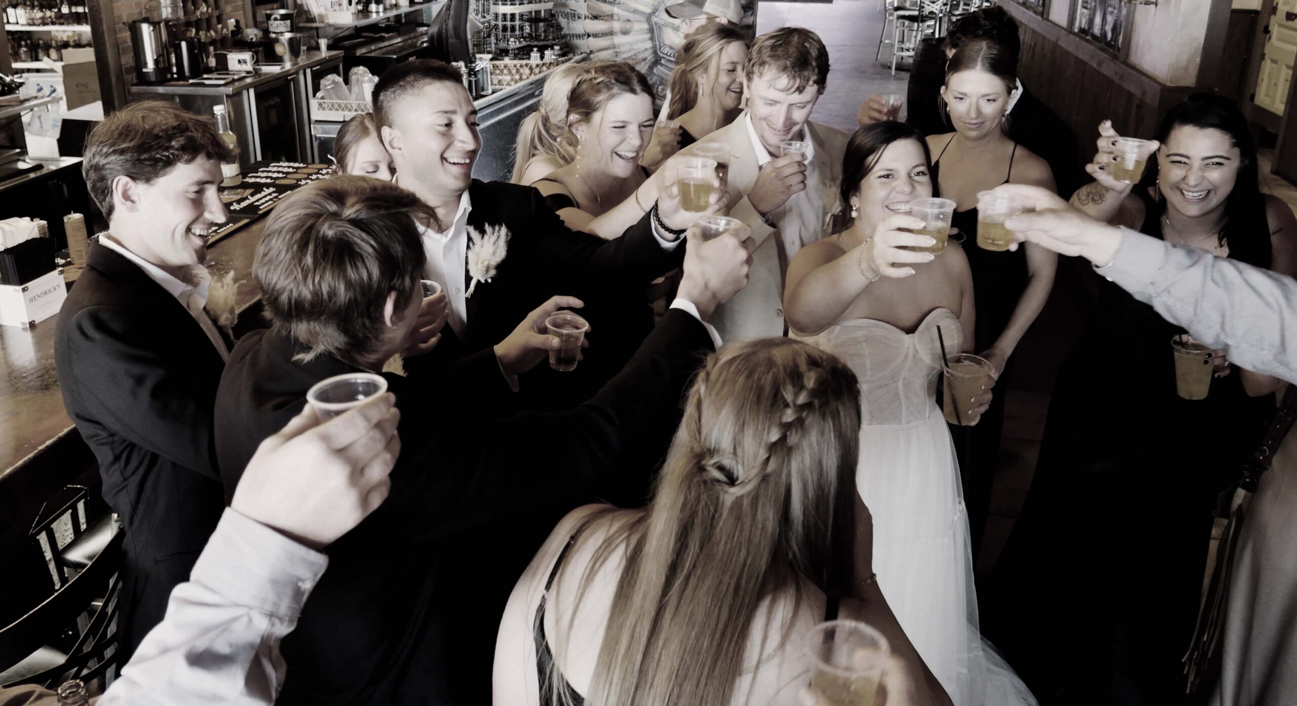 - Entire Toasts: 2 camera angles. Each toaster wears a microphone and the venue/DJ sound system is recorded.